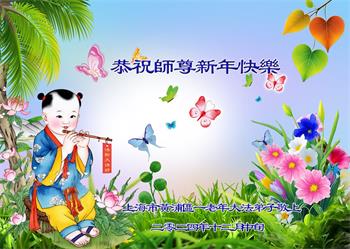 恭祝师尊新年快乐! 上海市黄浦区一老年大法弟子敬上 上海市徐汇区一大法弟子恭祝师父新年好!新年快乐!