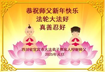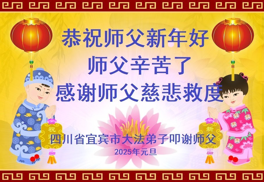 恭祝师尊新年快乐! 四川省宜宾市大法弟子携家人敬上 二零二四年十二月 四川省宜宾市居住在外的大法弟子恭祝师尊新年快乐!