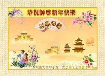 恭祝师父新年快乐!师父辛苦了,感恩师父慈悲救度。 四川省攀枝花市米易县全体大法弟子敬上 四川省攀枝花市米易县城区一大法弟子及家人恭祝师父新年快乐!
