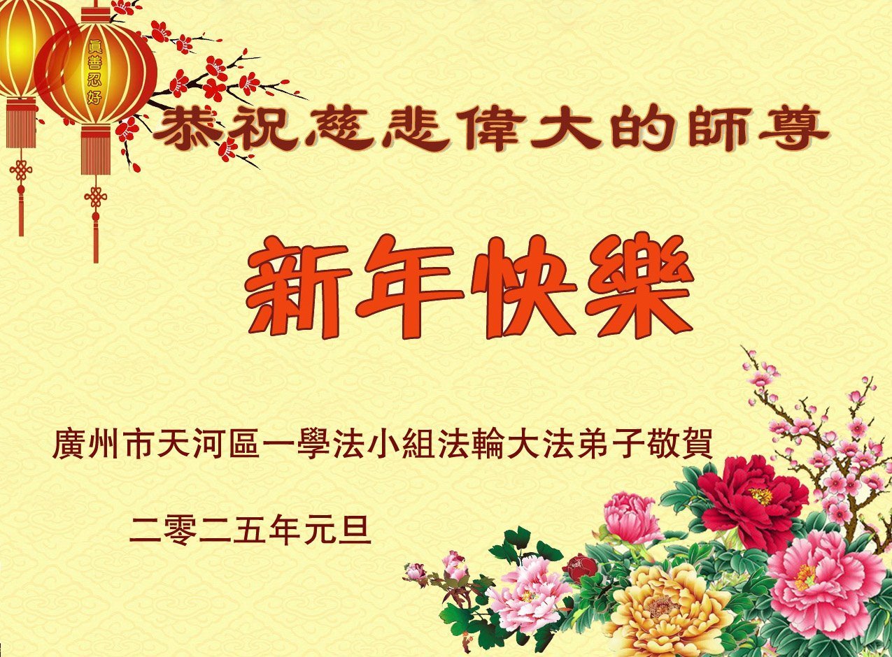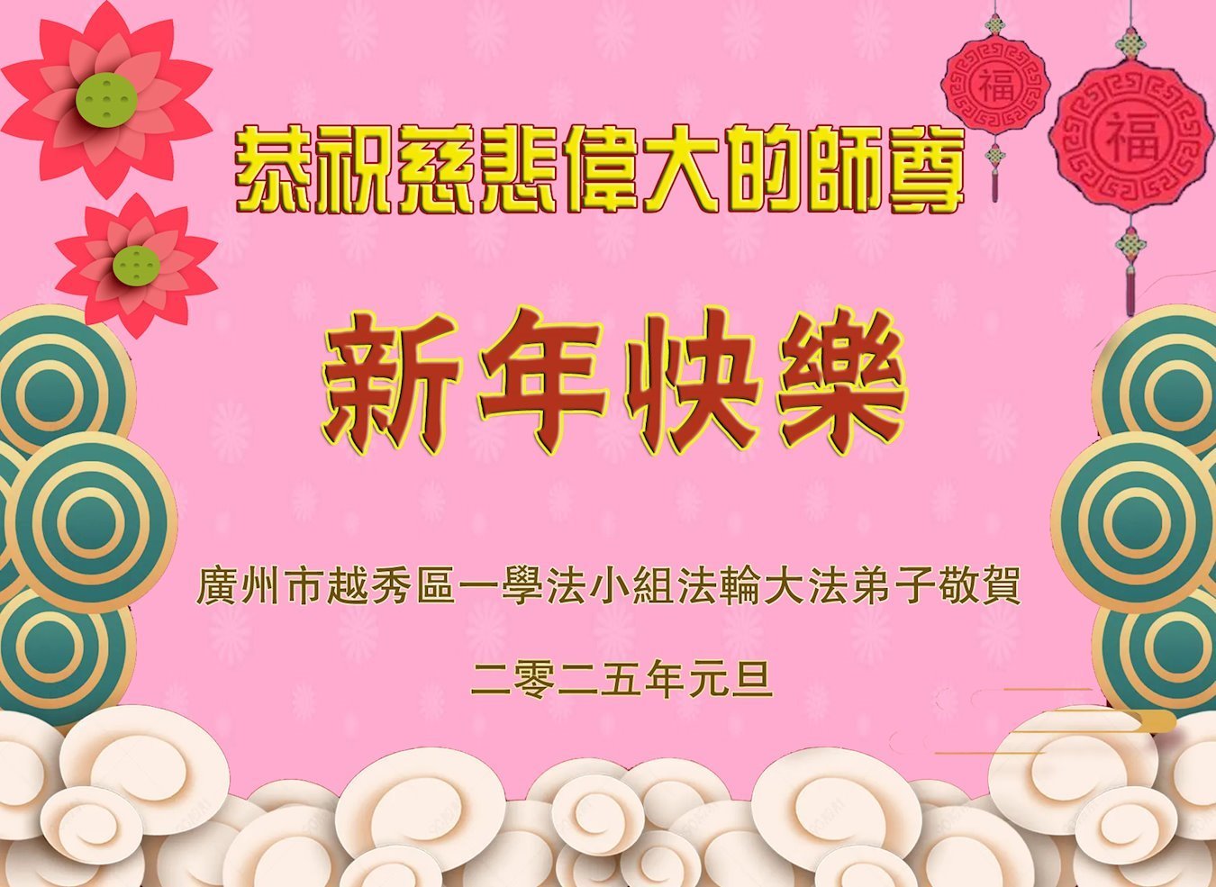 恭祝师父新年快乐! 广东省广州市两位大法弟子敬上 广东省广州市越秀区一学法小组大法弟子恭祝师尊新年快乐!