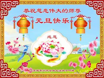 恭祝慈悲伟大的师尊新年好!感谢师尊的慈悲保护,千言万语无法表达对师尊的感恩。盼望师尊早日回国! 江苏省苏州市高新区全体大法弟子及家属敬上 江苏省南京市六合区大法弟子恭祝师尊新年快乐!
