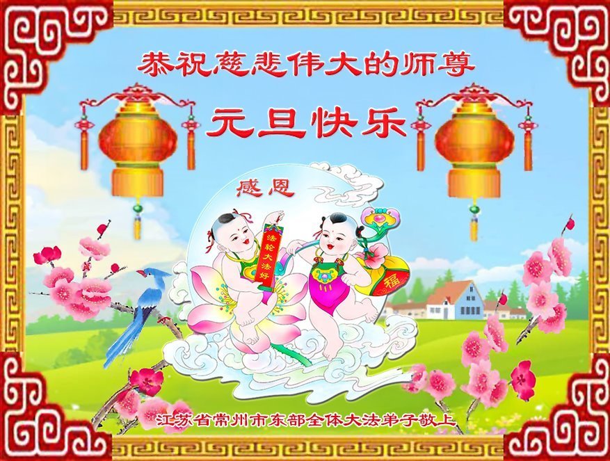 恭祝慈悲伟大的师尊元旦好! 江苏省常州市东部夫妻大法弟子敬上 江苏省常州市一大法弟子恭祝师父元旦快乐!