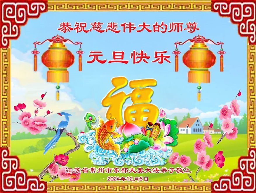 恭祝慈悲伟大的师尊元旦好! 江苏省常州市东部全体大法弟子敬上 江苏省常州市东部夫妻大法弟子恭祝慈悲伟大的师尊元旦好!