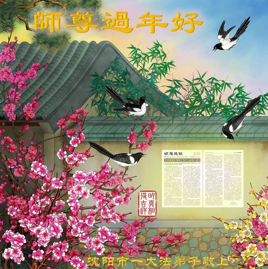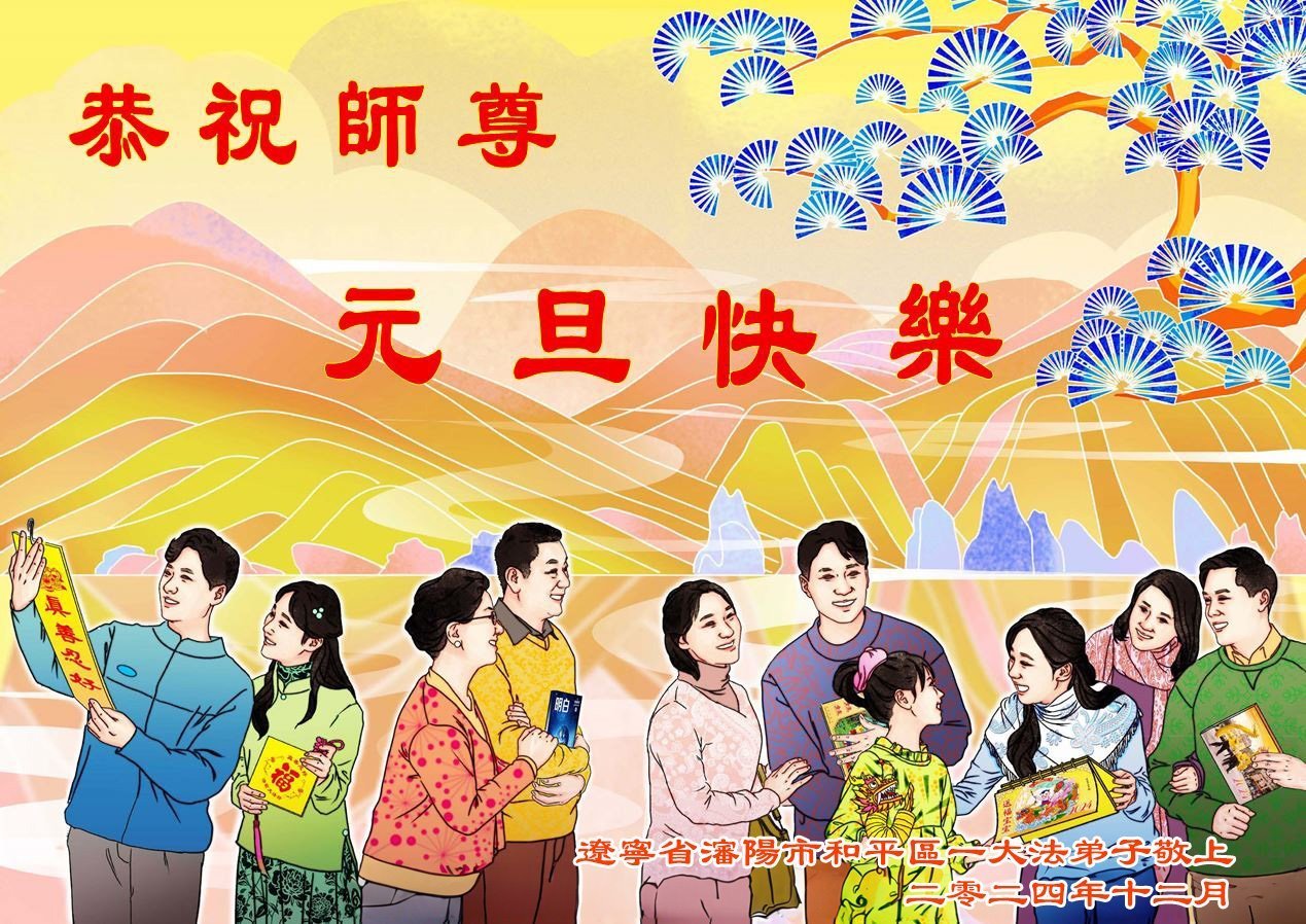 恭祝师父新年快乐! 感恩师尊救度众生!众弟子叩拜师恩。 辽宁沈阳全体大法弟子敬上 二零二四年十二月十日 辽宁省沈阳市沈河区大法弟子恭祝师尊新年快乐!