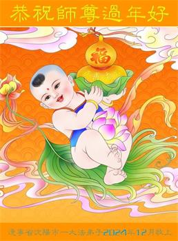 恭祝师尊新年快乐! 感恩师尊慈悲救度,弟子会再精進,多救人,圆满随师还。 辽宁省沈阳市一名大法弟子敬上 二零二四年十二月十日 辽宁省沈阳一学法小组大法弟子恭祝师尊新年快乐!