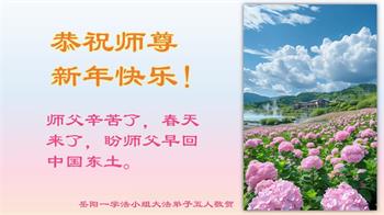 恭祝师尊新年快乐!师父辛苦了,春天来了,盼师父早回中国东土。 湖南省岳阳一学法小组五名大法弟子敬上 湖南省岳阳市一大法弟子恭祝慈悲伟大的师尊元旦快乐!