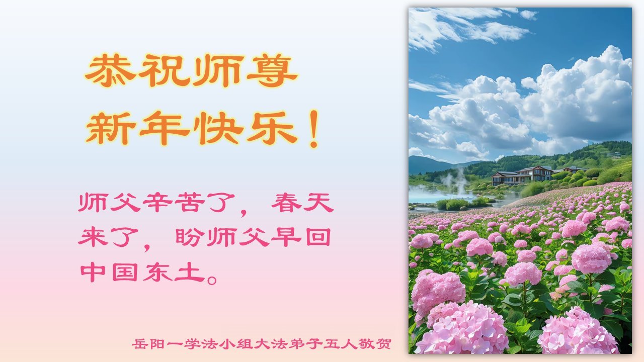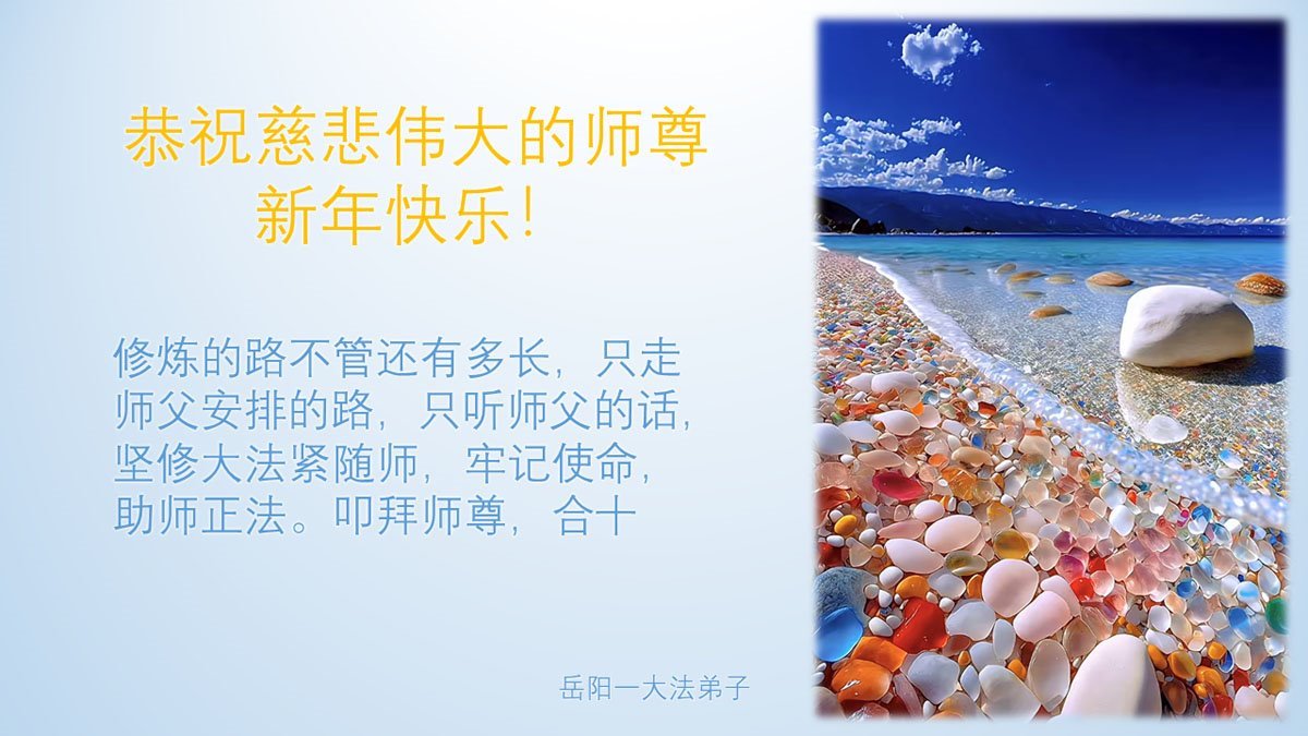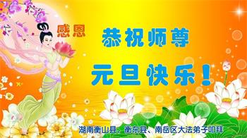 恭祝师尊新年快乐! 湖南省岳阳一大法弟子敬上 湖南省岳阳一学法小组五名大法弟子恭祝师尊新年快乐!