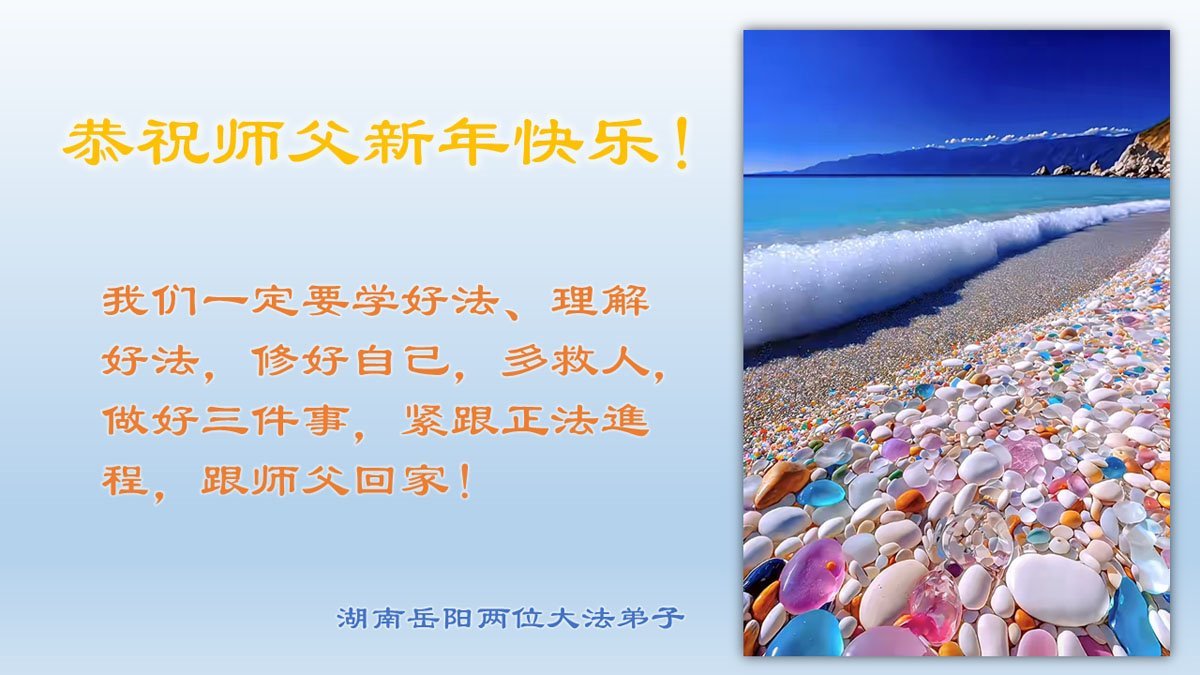 【明慧网二零二四年十二月二十八日】 湖南岳阳两位大法弟子恭祝师父新年快乐!