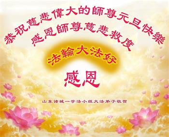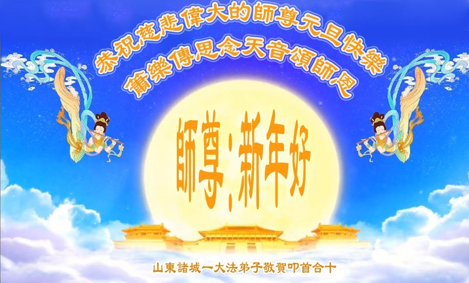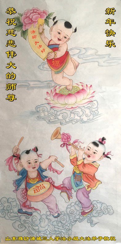 恭祝师尊新年快乐! 弟子感恩师尊的慈悲救度,我们一定做好三件事,圆满随师还。 山东潍坊诸城三人学法小组大法弟子敬上 山东省潍坊市诸城市一家大法弟子恭祝师父新年快乐!