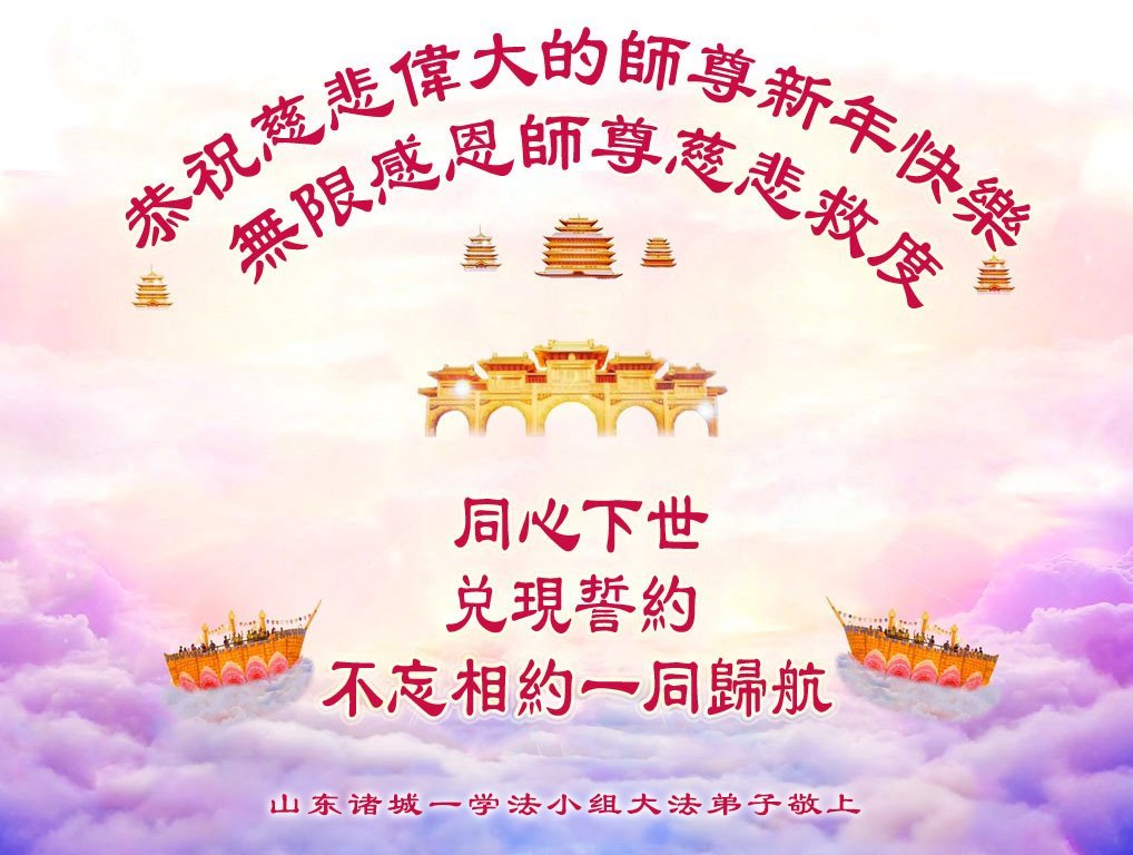 山东潍坊一学法小组大法弟子恭祝师尊新年快乐!