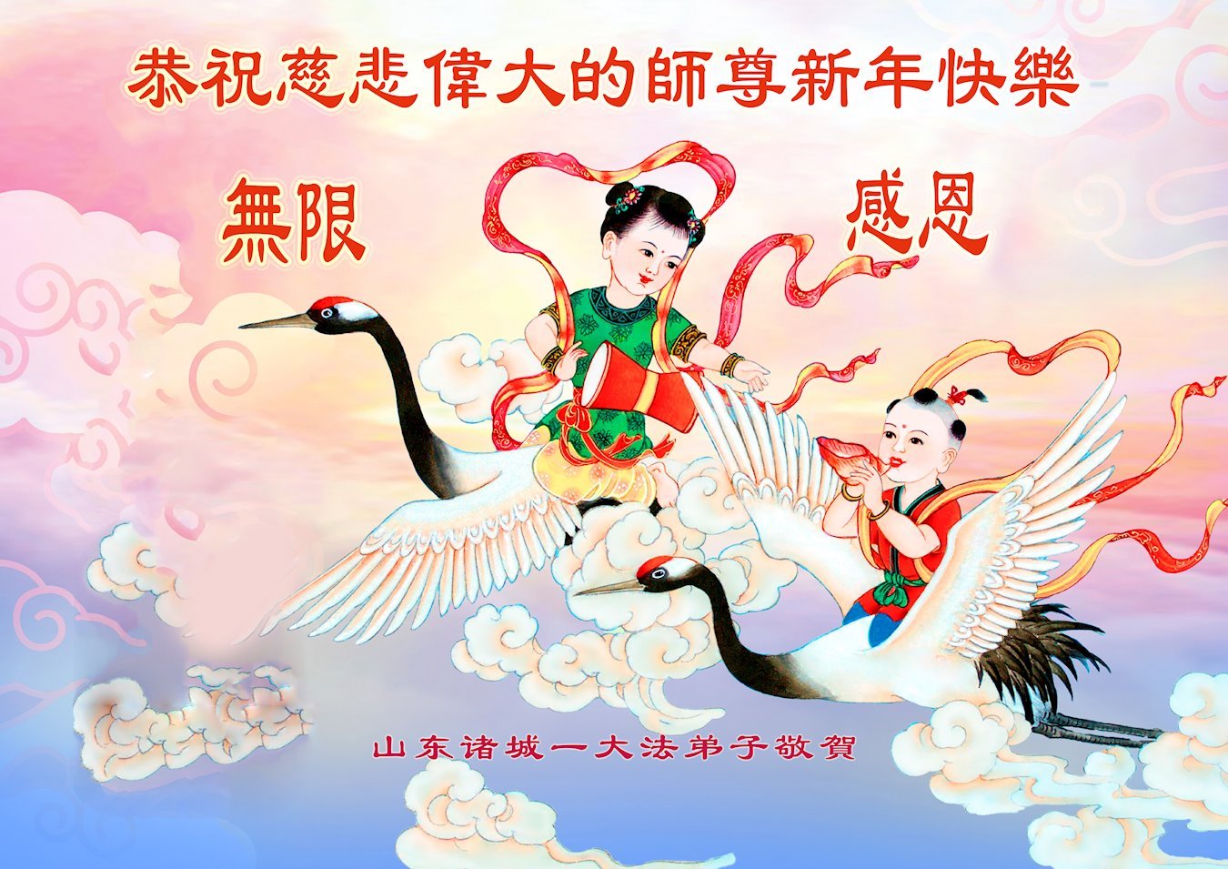 恭祝师尊新年快乐! 山东省潍坊市一大法弟子敬上 二零二四年十二月二十二日 山东潍坊诸城三人学法小组大法弟子恭祝师尊新年快乐!