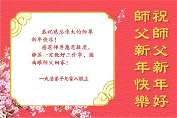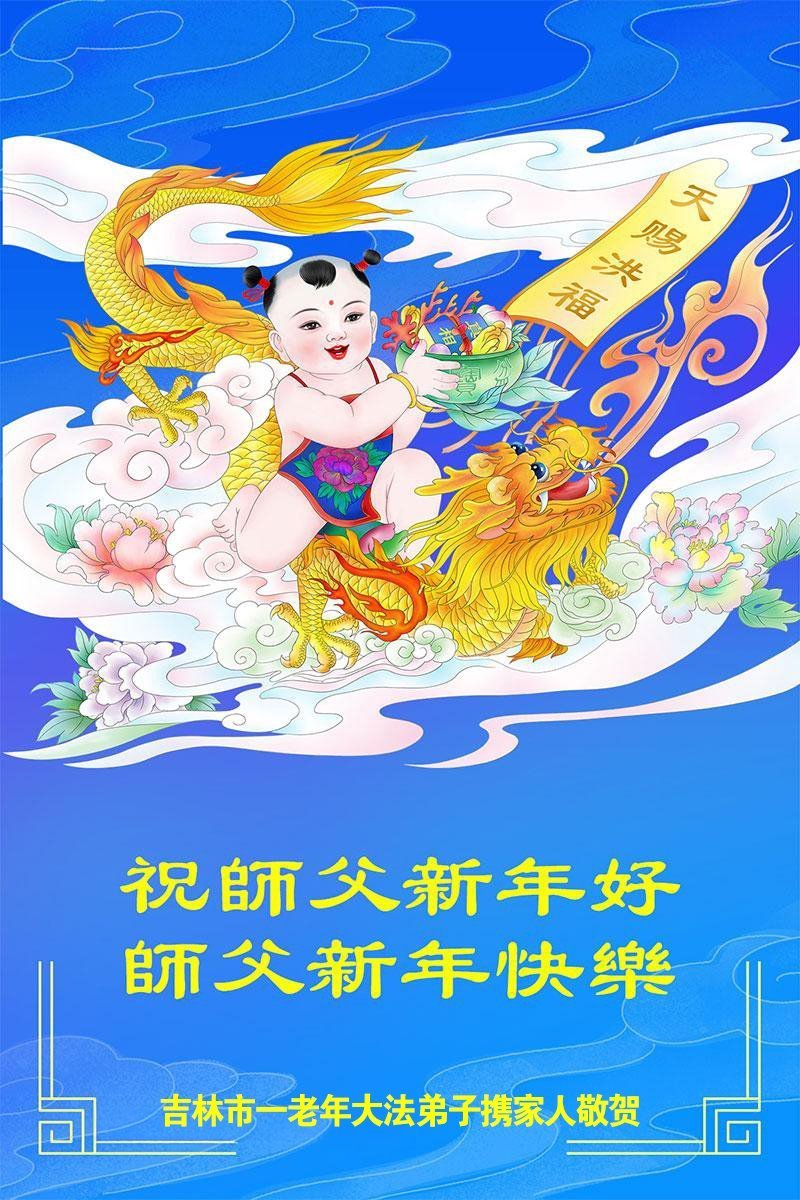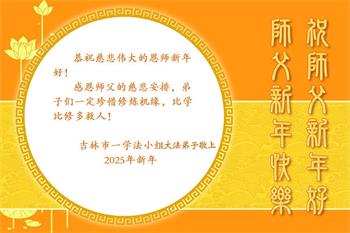 恭祝师尊新年快乐! 吉林省吉林市一老大法弟子携家人敬上 吉林省吉林市一学法小组大法弟子敬贺师父新年好!