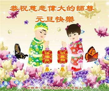 恭祝慈悲伟大的师尊元旦快乐! 吉林省吉林市一大法弟子敬上 吉林省吉林市两位大法弟子恭祝师父新年快乐!