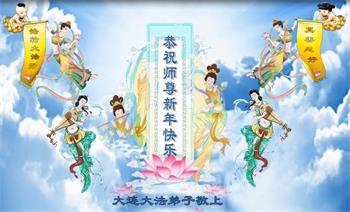 时光辗转又到新年 绵长的思念在心间 恭祝师尊新年快乐! 感谢师尊慈悲恩典 救度众生大法洪传 漫天法轮世间飞旋 沐浴法光无尽感慨 不辱使命兑现誓言 师尊圣恩铭记心田 无私无我心存正念 多讲真相助师救人 众生快醒登上法船 辽宁省大连一大法弟子恭祝师父新年快乐!