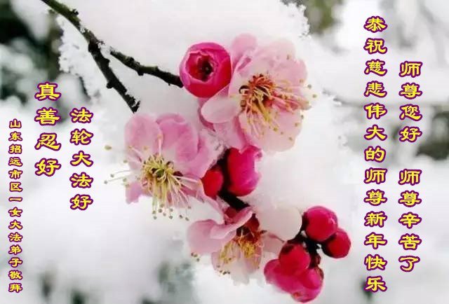 恭祝慈悲伟大的师尊新年快乐! 山东省莱阳市全体大法弟子敬上 山东省烟台市莱州市一大法弟子恭祝师尊新年快乐!