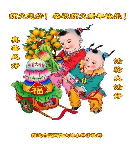 恭祝师尊新年快乐! 山东省莱阳市河洛镇全体大法弟子敬上 山东省烟台市栖霞市两名大法弟子携全家十七人恭祝慈悲伟大的师尊新年快乐!