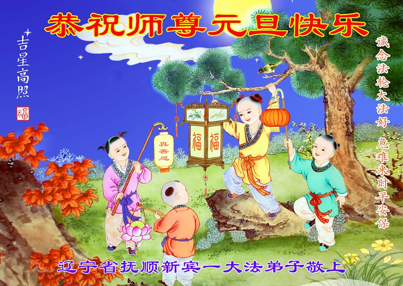 恭祝师父新年快乐! 辽宁省鞍山大法弟子敬上 辽宁省营口鲅鱼圈大法弟子恭祝慈悲伟大师尊新年好!