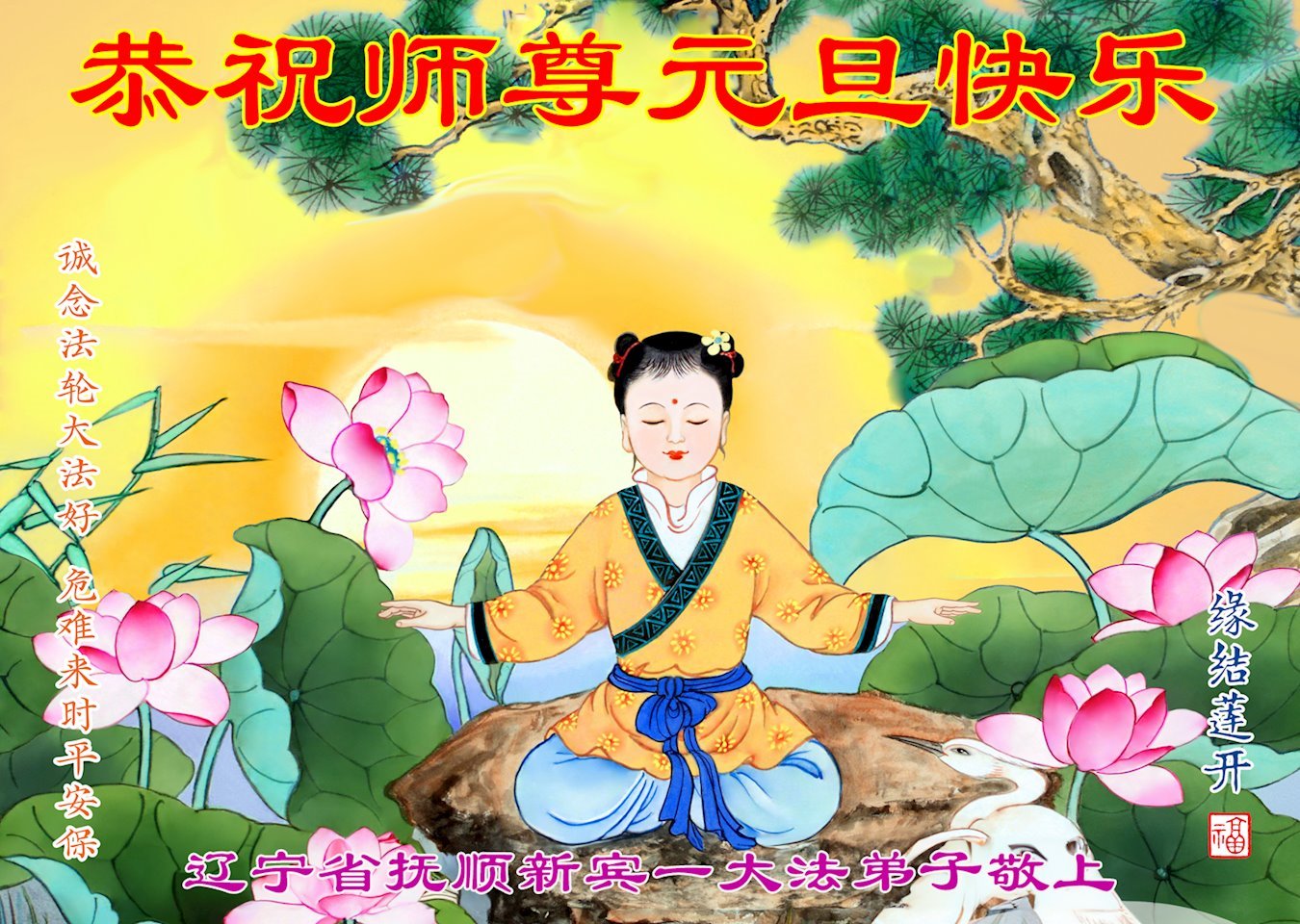 恭祝师尊新年快乐! 辽宁省铁岭大法弟子敬上 辽宁抚顺新宾大法弟子恭祝师尊元旦快乐!