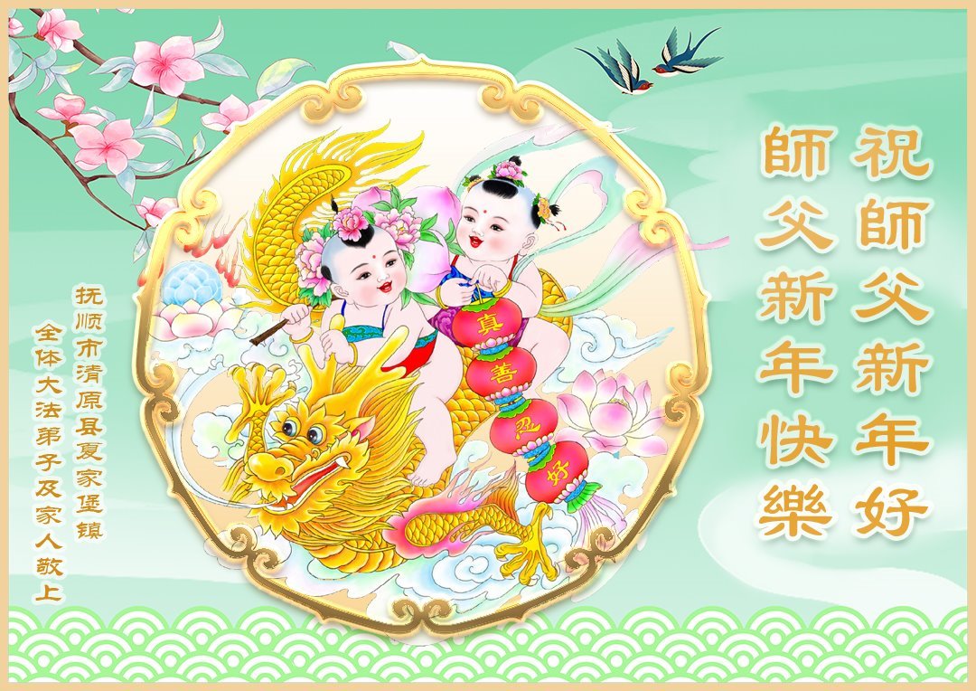 恭祝师尊新年快乐! 在正法的最后進程中,弟子们一定不忘使命抓紧救人,在新的一年里做好三件事,真正的精進起来!不辜负师尊慈悲救度! 辽宁省抚顺市清原县夏家堡镇全体大法弟子敬上 辽宁省营口市夫妻大法弟子恭祝师尊新年好!