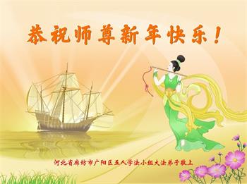 恭祝师尊新年快乐!谢谢师父!叩拜师尊! 河北省廊坊市广阳区新开路五人学法小组大法弟子敬上 河北省廊坊市燕郊大法弟子恭祝师父新年好!