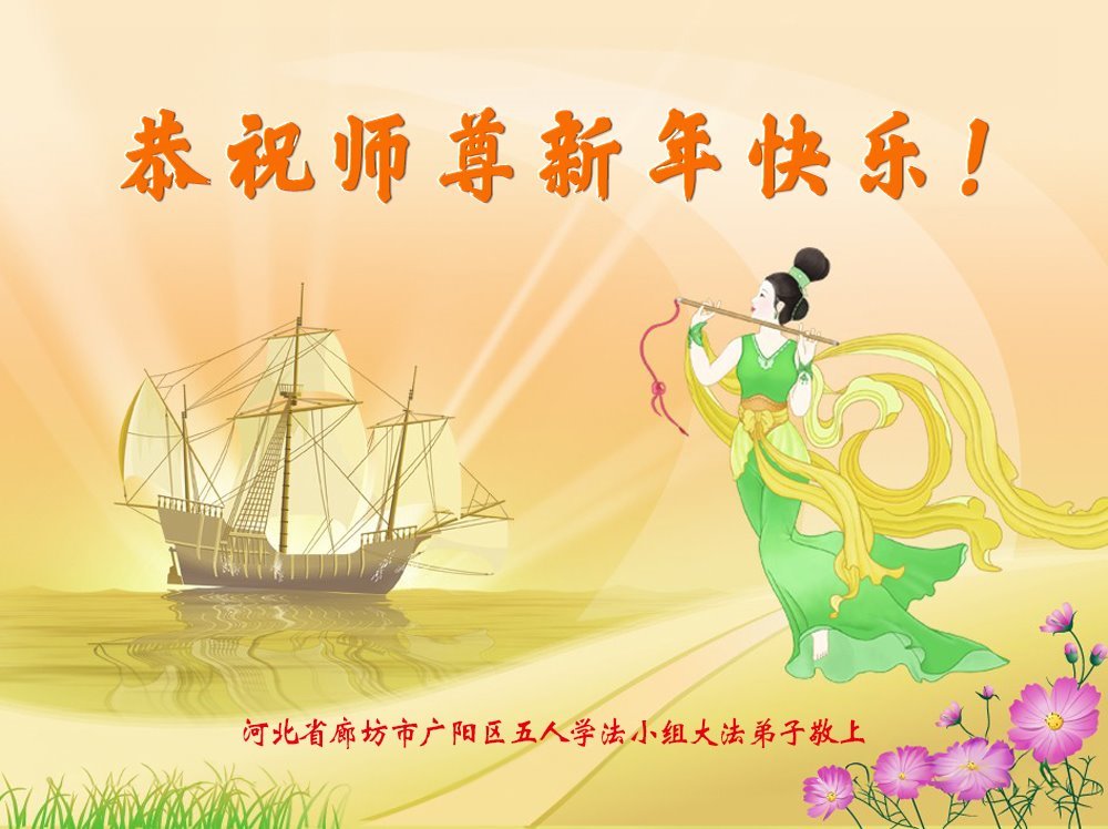 恭祝师尊新年快乐!谢谢师父!叩拜师尊! 河北省廊坊市广阳区新开路五人学法小组大法弟子敬上 河北省廊坊市广阳区新开路五人学法小组大法弟子恭祝师尊新年快乐!