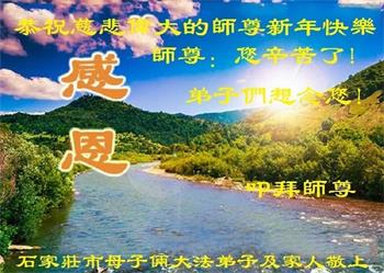 恭祝慈悲伟大的师尊新年快乐! 河北省石家庄市辛集市全家六人大法弟子敬上 河北省石家庄辛集市夫妻大法弟子恭祝师尊新年快乐!