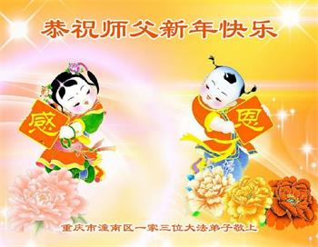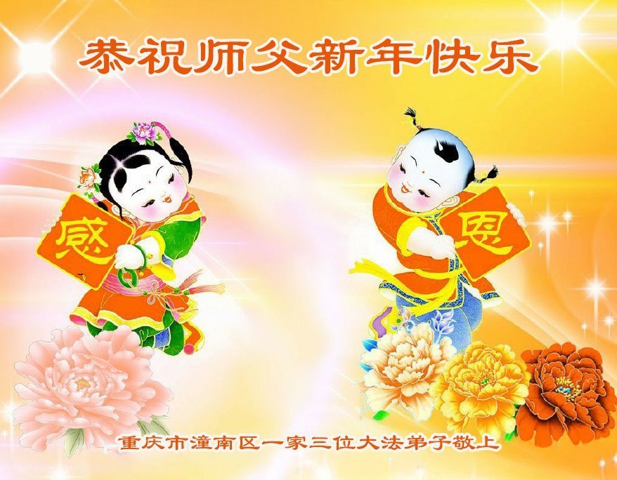 恭祝师尊新年快乐! 重庆市长寿区一学法小组大法弟子敬上 二零二四年十二月二十日 重庆市潼南区一家三位大法弟子恭祝师父新年快乐!