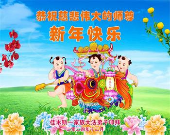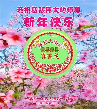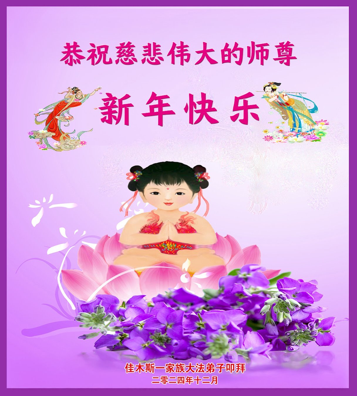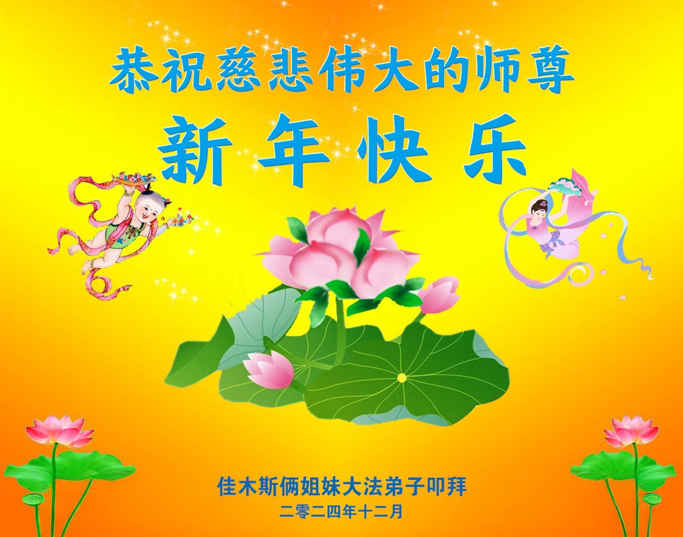 恭祝慈悲伟大的师尊新年快乐! 黑龙江省佳木斯市大法弟子俩姐妹敬上 黑龙江省佳木斯市一大法弟子全家恭祝慈悲伟大的师尊新年快乐!