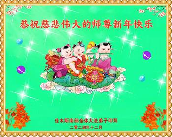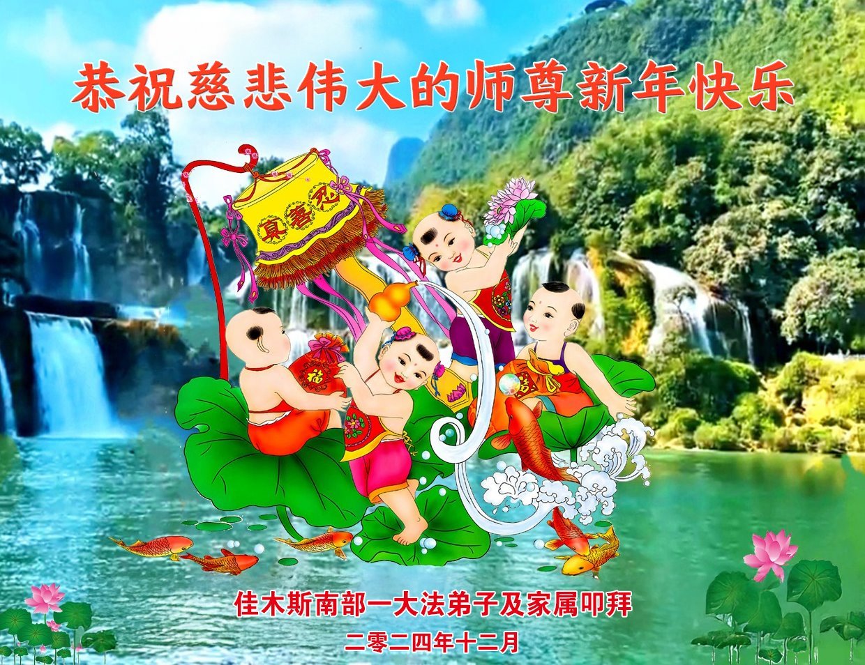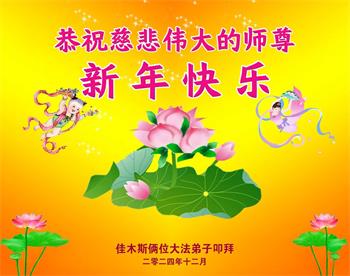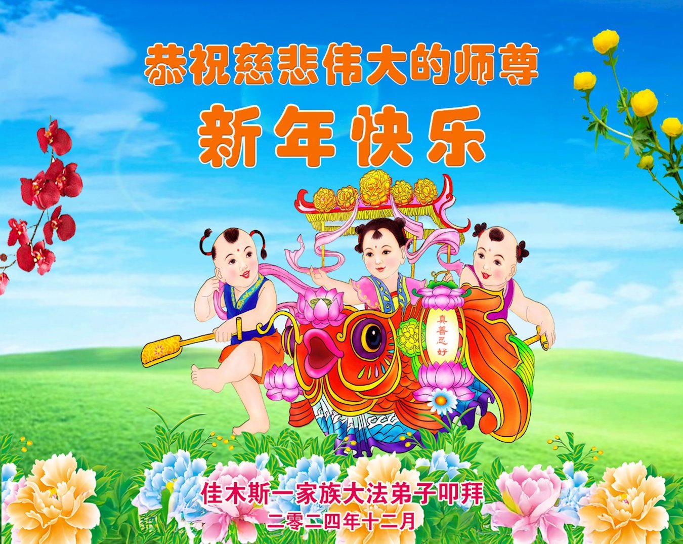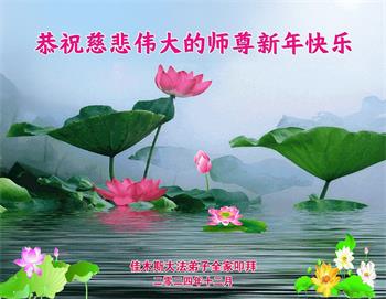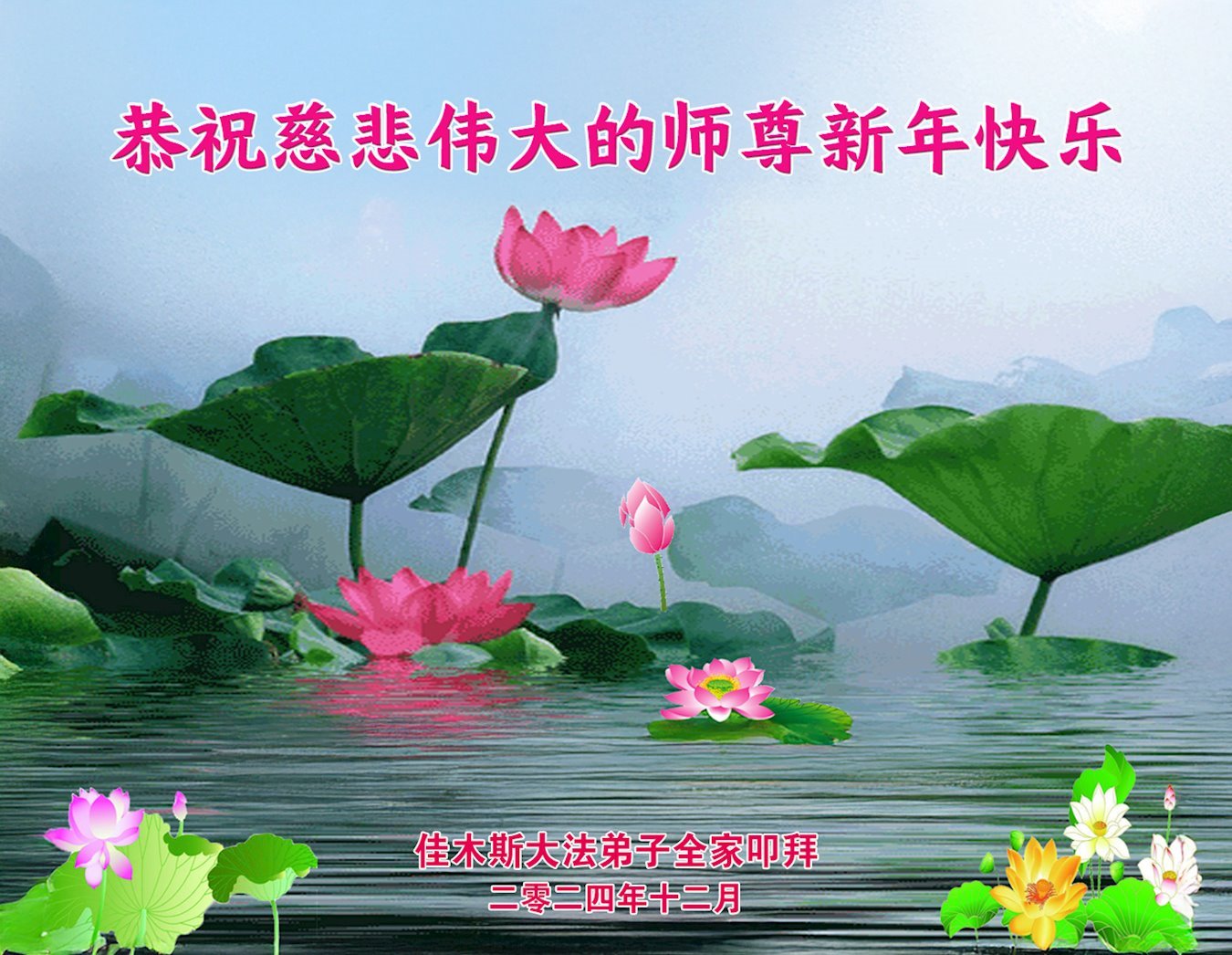 恭祝慈悲伟大的师尊新年快乐! 黑龙江省佳木斯市南部全体大法弟子敬上 黑龙江省佳木斯市南部一大法弟子及家属恭祝慈悲伟大的师尊新年快乐!
