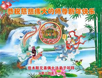 恭祝慈悲伟大的师尊新年快乐! 黑龙江省佳木斯市两位大法弟子敬上 黑龙江省佳木斯市南部全体大法弟子恭祝慈悲伟大的师尊新年快乐!