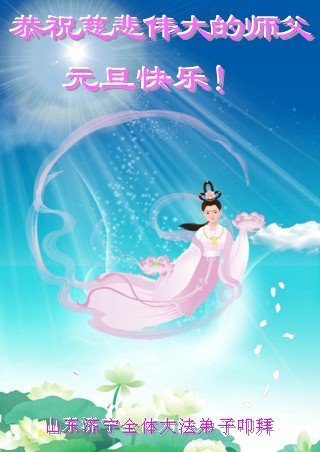 山东省济宁地区大法弟子恭祝慈悲伟大的师尊元旦快乐!