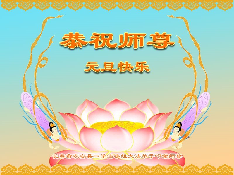 吉林省长春市农安县一学法小组大法弟子恭祝慈悲伟大的师尊元旦快乐!感恩师尊慈悲救度!