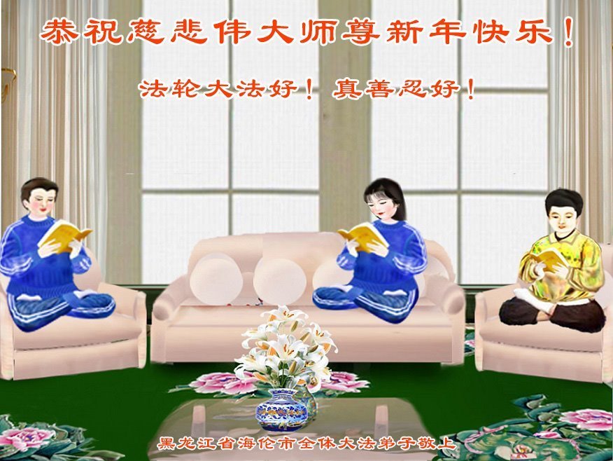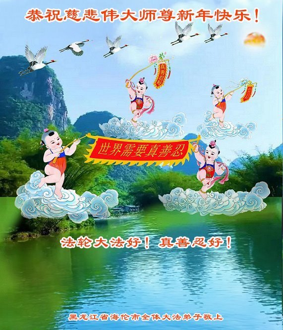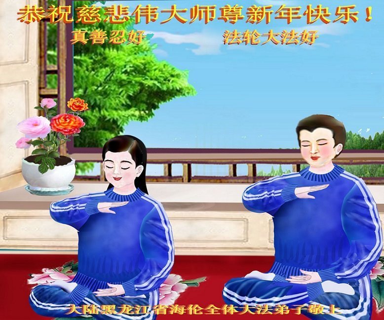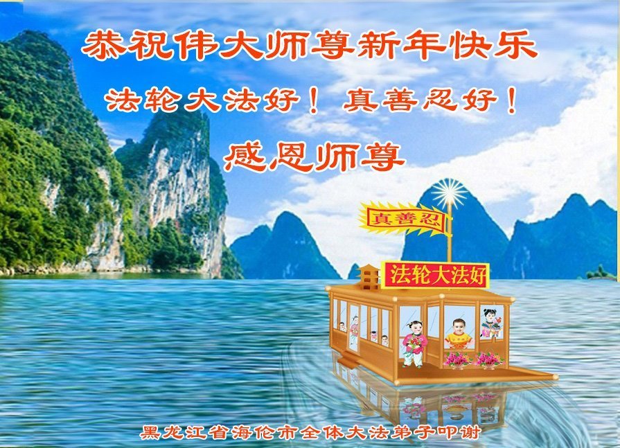 恭祝师尊新年快乐! 弟子叩拜师尊救度之恩! 黑龙江省海伦市夫妻大法弟子敬上 黑龙江省绥化市海伦市全体大法弟子恭祝师尊新年快乐!
