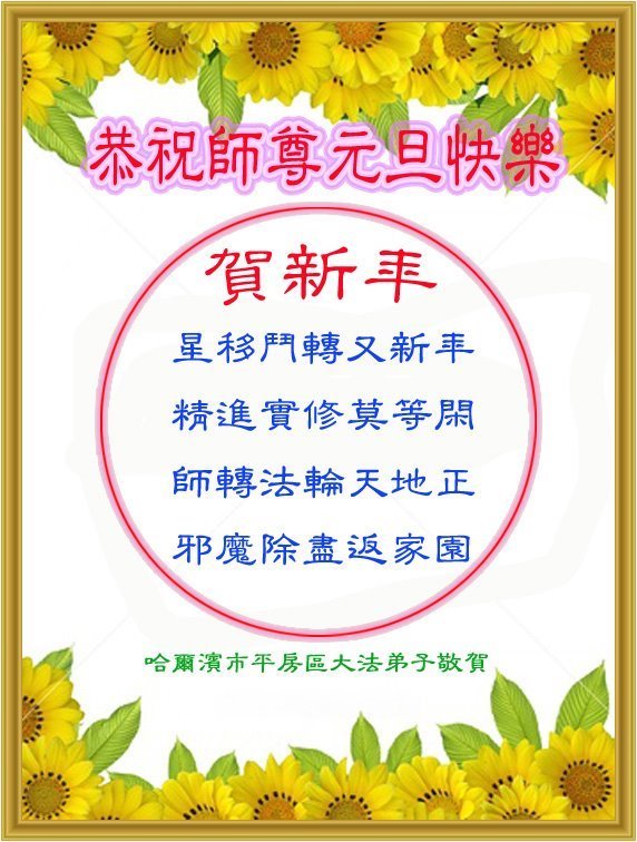 【明慧网二零二四年十二月二十九日】 黑龙江省哈尔滨市平房区大法弟子恭祝伟大师尊元旦快乐!