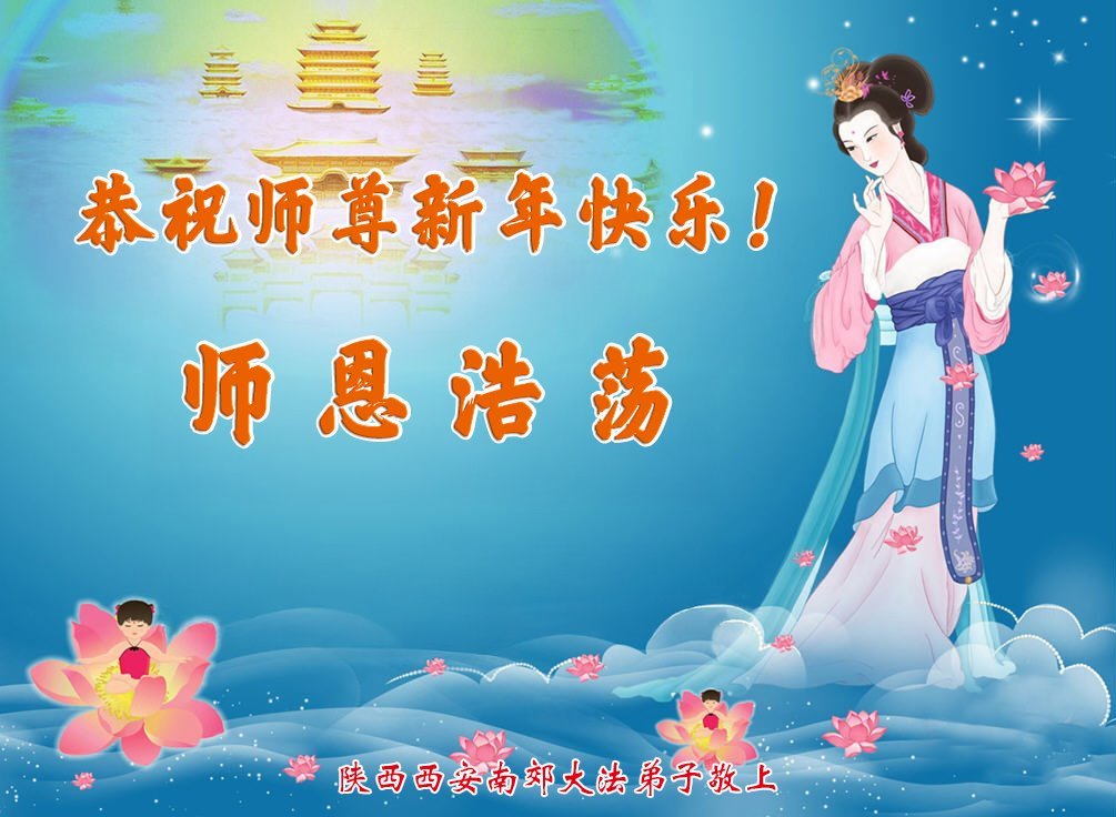 陕西省西安市南郊大法弟子恭祝师尊新年快乐!