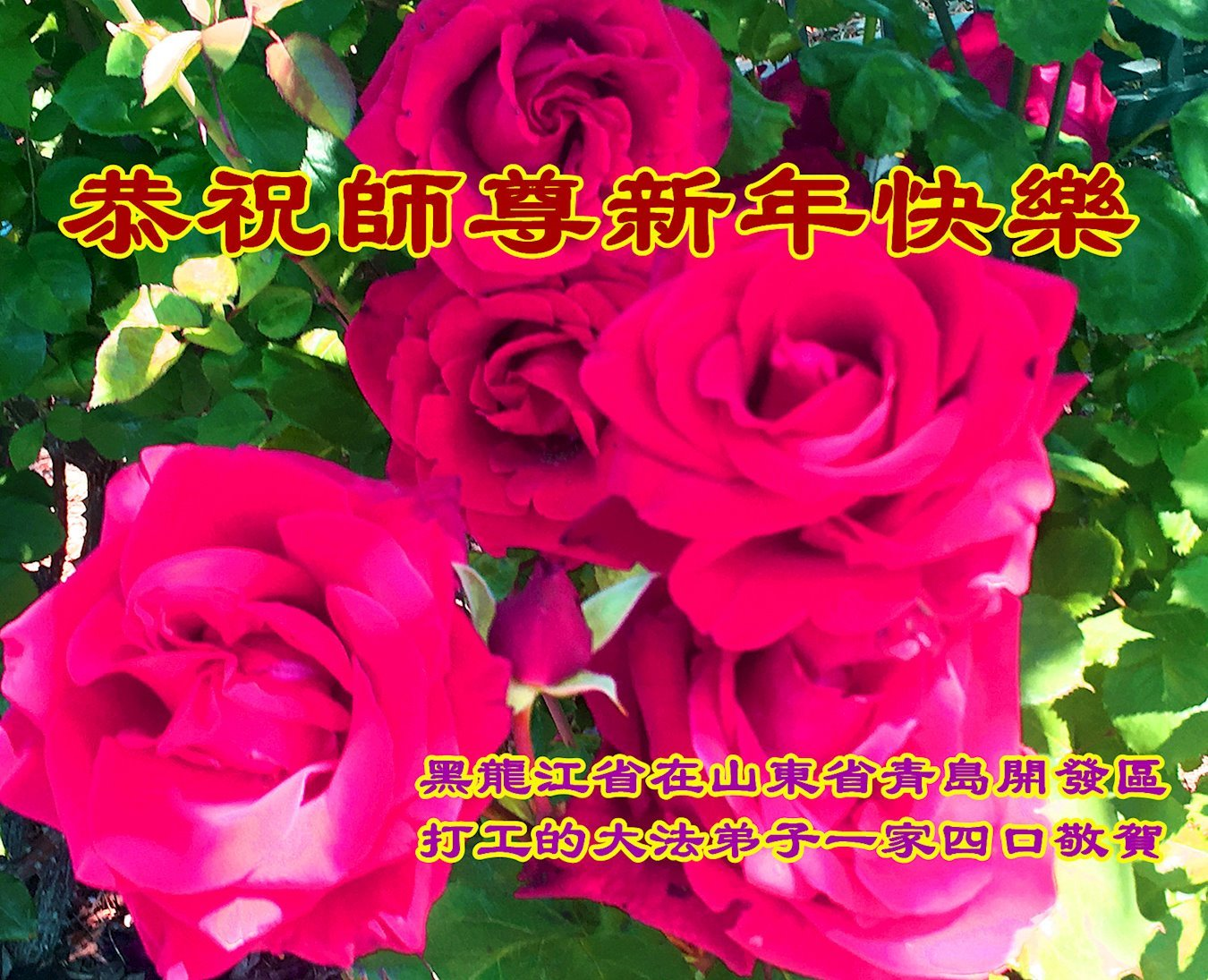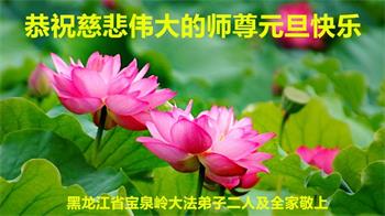 黑龙江省在山东省青岛开发区打工的大法弟子一家四口恭祝师尊新年快乐! 黑龙江省宝泉岭大法弟子二人及全家恭祝师尊元旦快乐!
