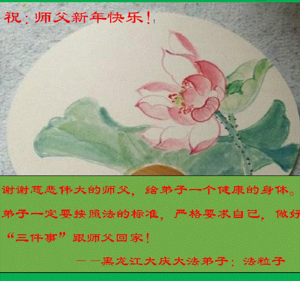 恭祝师尊新年好!感恩师尊慈悲苦度!感恩师尊救度之恩! 黑龙江省大庆市大法弟子敬上 黑龙江大庆一老年大法弟子恭祝师尊新年快乐!