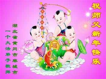 湖北省黄冈市麻城市一大法弟子恭祝师尊新年好!