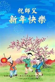 恭祝师尊新年快乐! 吉林省长春市一女大法弟子携孙儿敬上 二零二四年十二月二十五日 吉林长春大法弟子及全家恭祝师父新年快乐!