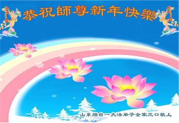 山东烟台一家三位大法弟子恭祝师尊元旦快乐!