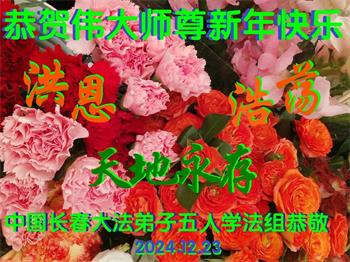 恭祝师尊新年快乐! 在新的一年到来之际,弟子全家怀着感恩之心,恭祝师尊新年快乐! 感恩师父的慈悲救度,将真善忍的光芒照亮世间。引导众生返本归真。 师父辛苦了!法轮大法好!真善忍好! 吉林长春大法弟子敬上 二零二四年十二月二十四日 吉林省长春大法弟子五人学法组恭祝伟大师尊新年快乐!