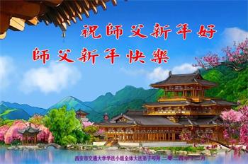 感恩师尊慈悲救度。我们将紧跟师尊正法進程,全力助师救世人,不辜负师尊的希望! 陕西西安交通大学大法弟子恭祝师尊新年好!