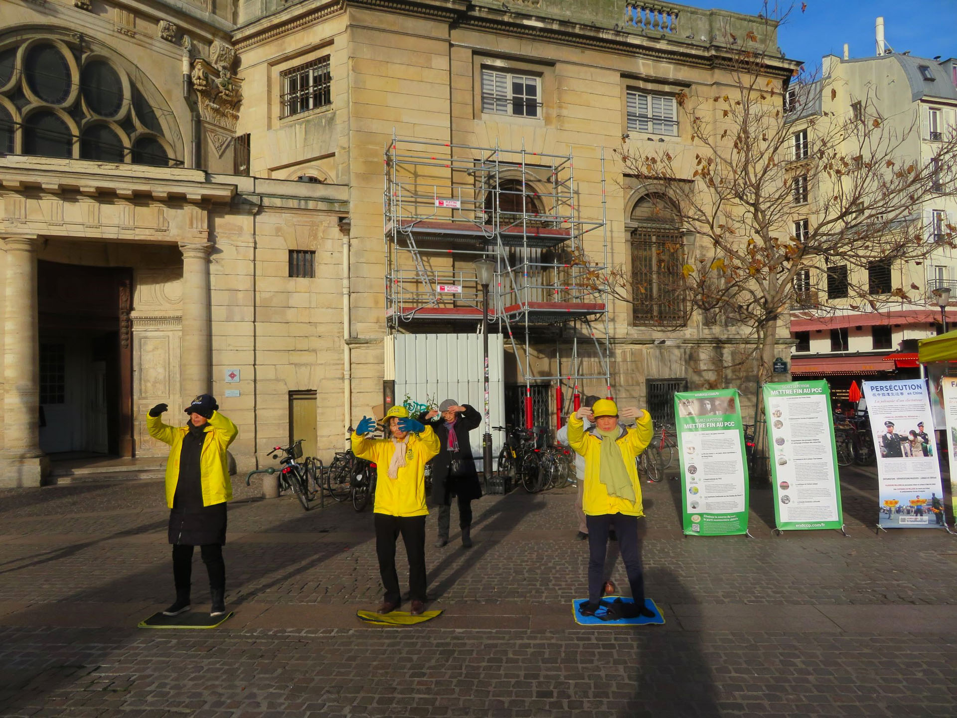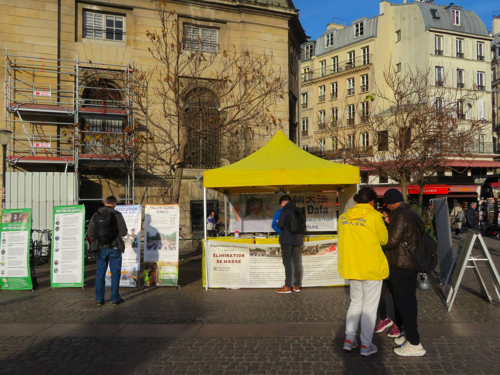 | 【明慧网二零二四年十二月三日】(明慧记者周文英巴黎报道)二零二四年十一月二十九日星期五,在巴黎市中心夏特莱(Châtelet)街区,法轮功学员举办了法轮功信息日活动。他们演示法轮功功法,向游客和民众介绍法轮功及中共迫害法轮功的真相,同时征集签名,反对中共迫害。 当天天气晴朗,空气清新。人群中,社会各阶层人士,大学生、教师、艺术家、退休人士等,纷纷前来了解法轮功真相及中共活摘器官的罪行。人们逐渐认清中共的邪恶,一听说反对中共迫害,就毫不犹豫地立即签名支持反迫害。他们都要表达一个共同的心愿,那就是早日结束迫害!  图1~5:在巴黎市中心夏特莱(Châtelet)街区,法轮功学员演示法轮功功法,向游客和民众介绍法轮功及中共迫害法轮功的真相。 |