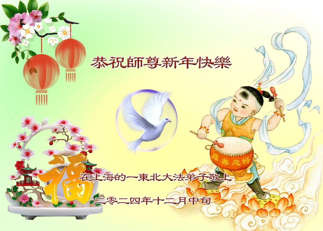 上海大法弟子敬上 二零二四年十二月二十二日 上海浦东一大法弟子恭祝慈悲伟大的师尊新年快乐!