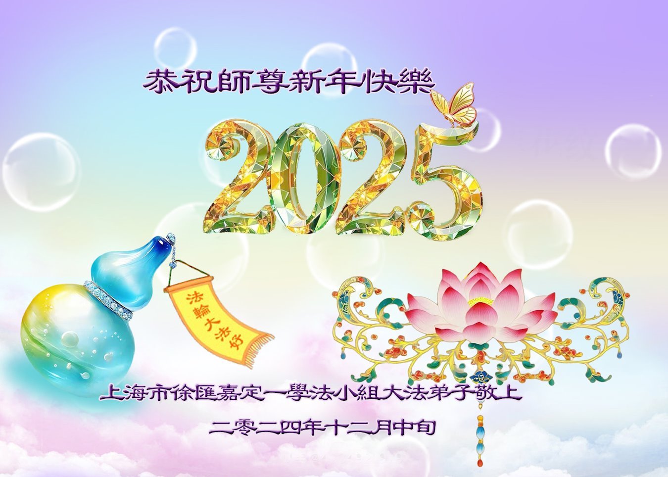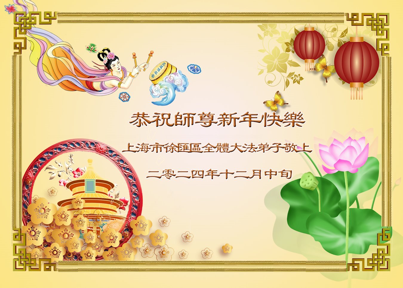 上海黄浦区一学法小组敬上 二零二四年十二月二十二日 上海大法弟子恭祝师父新年快乐!