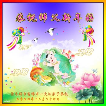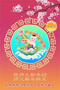 黑龙江省佳木斯市富锦市一大法弟子代表全家三口向慈悲伟大的师父问好! 祝师尊元旦快乐! 黑龙江省佳木斯市汤原农场一女大法弟子恭祝师尊新年快乐!