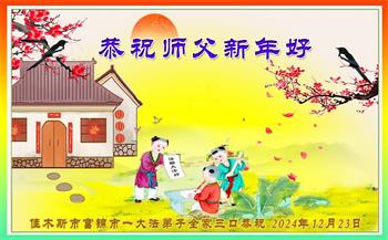 黑龙江省佳木斯市桦南大法弟子一家四口敬上 二零二四年十二月二十三日 黑龙江佳木斯市富锦市全体大法弟子恭祝师父新年好!