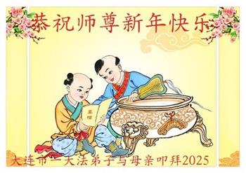 恭祝师父新年快乐! 辽宁省大连市甘井子一大法弟子携家人敬上 辽宁省大连市大法弟子恭祝师父新年快乐!