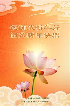恭祝师尊新年快乐! 天津市西青区杨柳青镇全体大法弟子敬上 天津市一学法小组大法弟子恭祝师尊新年好!
