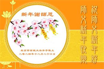 弟子珍惜这万古机缘,奋起直追,实修自己,清除谎言救世人。 居住在北京朝阳区、东城区的大法弟子恭祝师尊新年快乐!